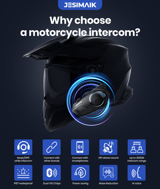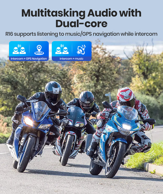 Motorcycle Bluetooth Headset, Dual Chips for Multitasking Audio, 10 Riders Pairing 2000M Motorcycle Helmet Bluetooth Intercom System, HiFi Sound/Music Sharing/AI Voice/FM/Noise Reduction